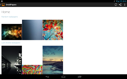 DroidPapers gives an overview of wallpapers, ringtones and Live Wallpapers from official stock Android and famous companies and ROMs of Android. Download the wallpaper or ringtone you like and set it from within the app. App is ad-free.